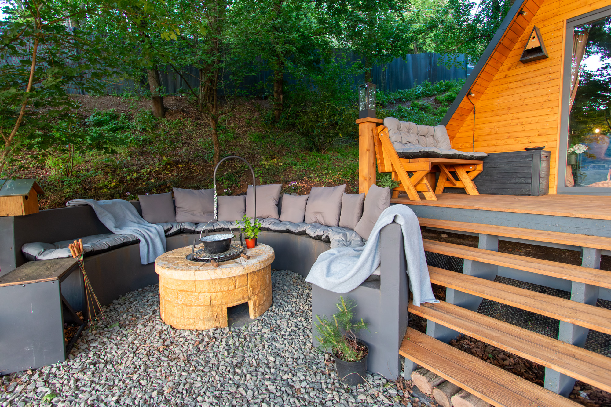 Panorámás faház erdei wellnessel