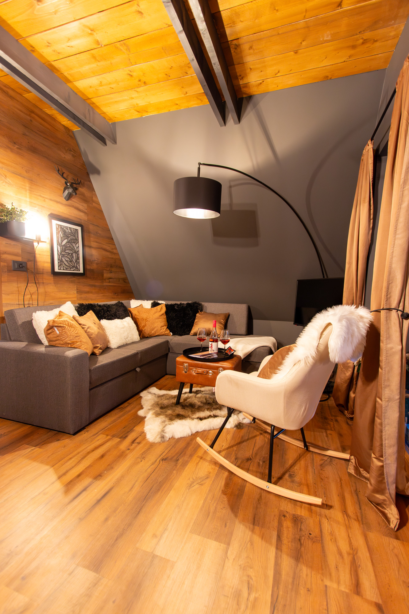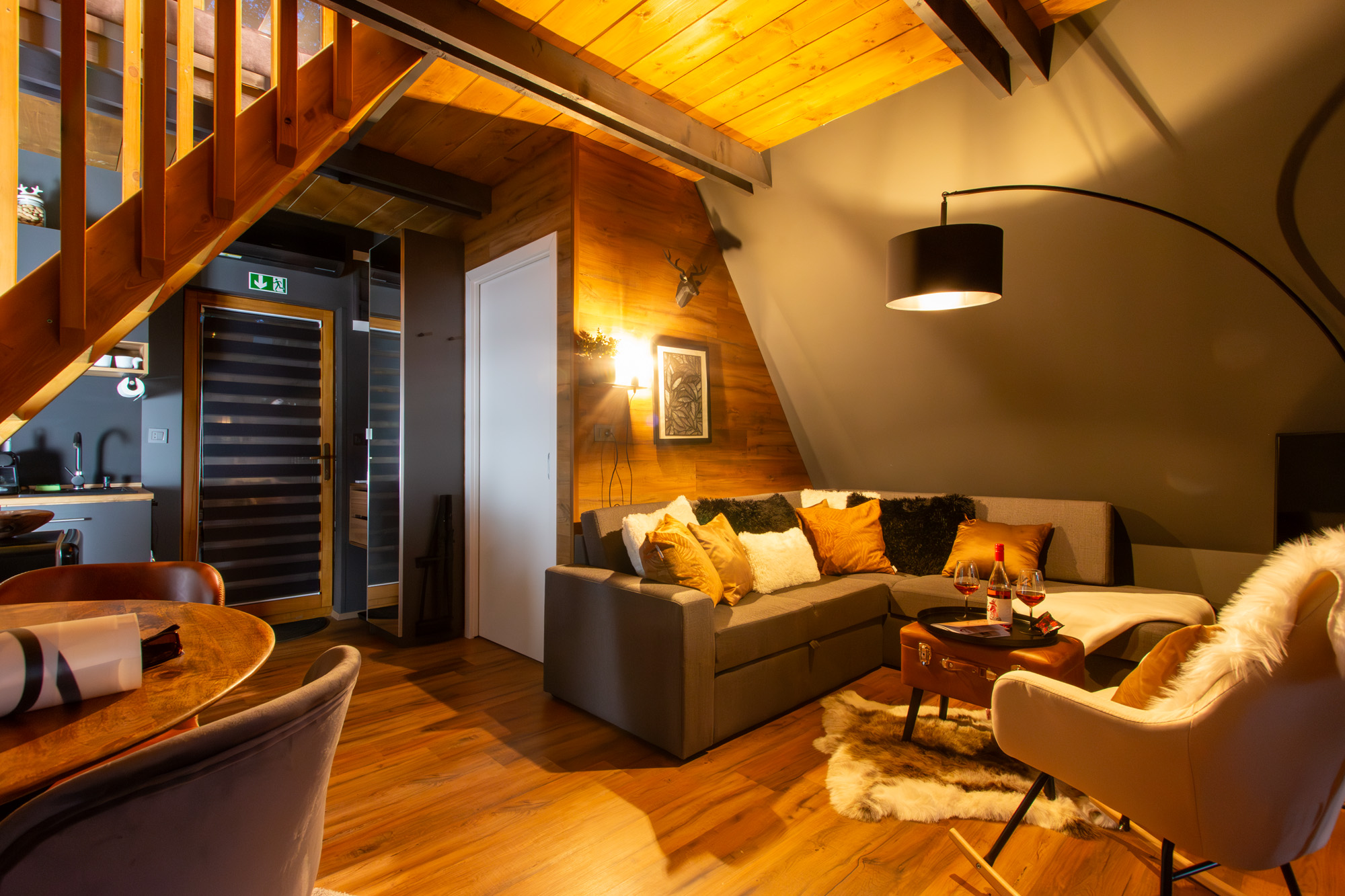 Lépcsőn keresztül juthattok fel a galériára, amit a pihentető alvásra rendeztünk be.