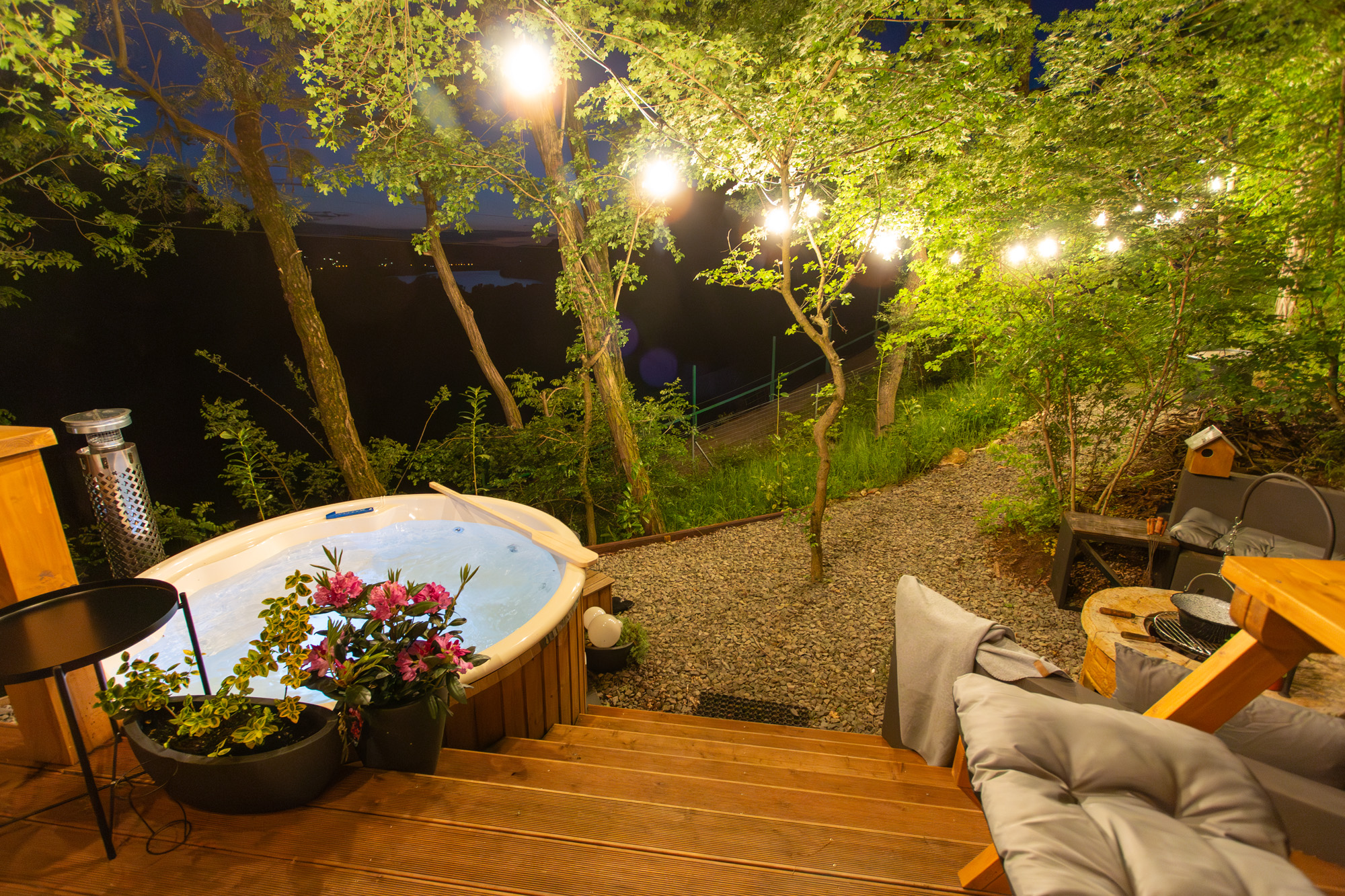 A ház az aktív pihenésen túl édes semmittevésre is tökéletes választás. Ejtőzzetek a galérián a hálóban, csobbanjatok egyet a pezsgőfürdős fatüzeléses dézsában, olvassatok egy izgalmas könyvet a függőhálóban, beszélgessetek a ropogó tűz mellett bográcsozás közben, csodáljátok meg a naplementét egy pohár borral a kezetekben vagy próbáljátok ki a bekészített társasjátékokat.
